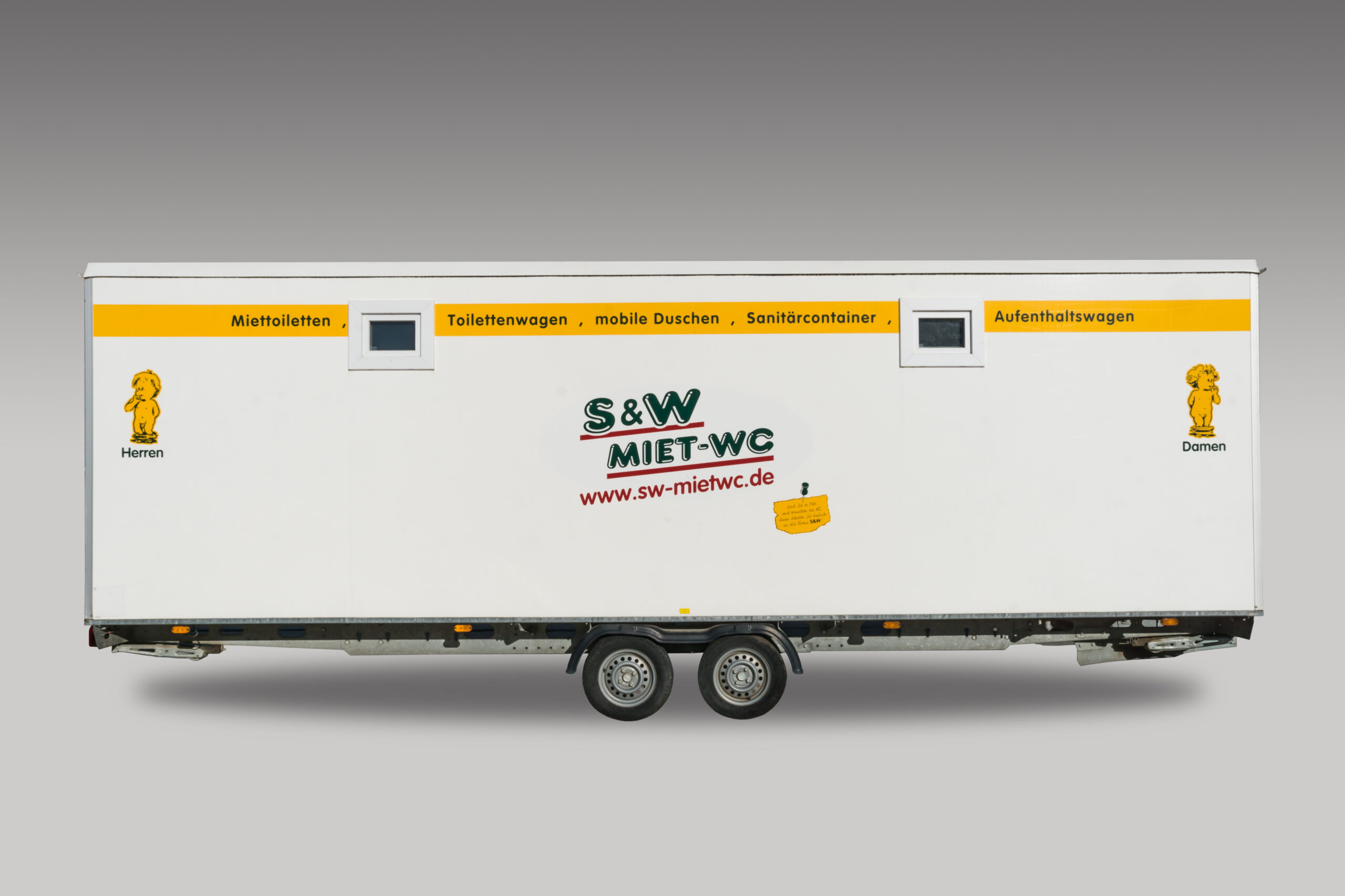 Für öffentliche oder besondere Veranstaltungen, wie z.B. Straßenfeste oder Hochzeiten im Freien, können Sie bei uns bestens ausgestattete Toilettenwagen mit getrennten Bereichen mieten.