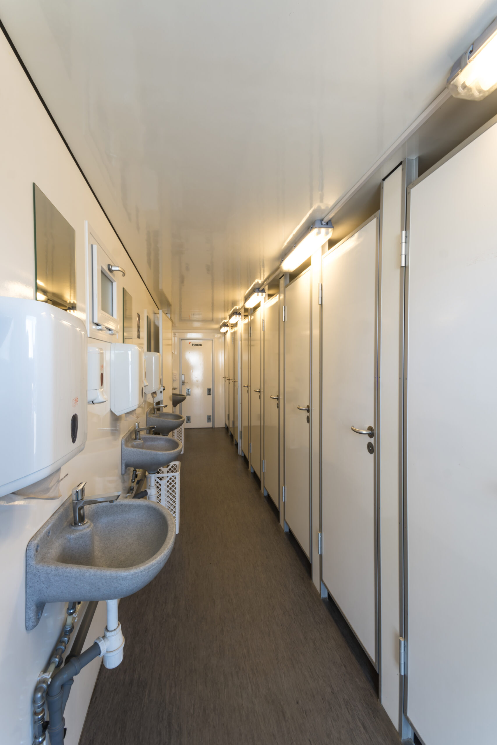 Herrenabteil: – 5 Urinale – 1 Toilettenkabine – 2 Waschbecken – Schamwand